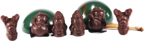 Pour (vous) faire plaisir, pensez aussi à notre boule de Noël assortiment. Elle renferme plusieurs chocolats (2 Rennes, 2 Père Noël et 2 Bonhommes de neige) et pourra joliment décorer votre sapin ou celui de vos proches.