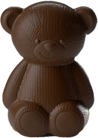 Disponible en lait ou noir (les mini oursons sont de la même couleur que le grand ours).